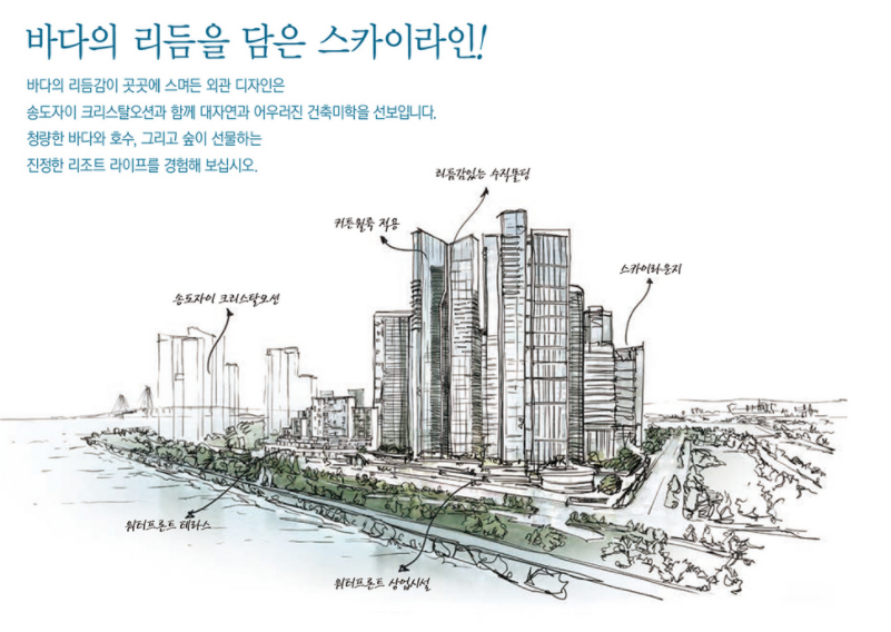 커튼월룩을 적용한 멋진 외관디자인과 스카이라운지까지 갖추고 있으며 워터프론트 상업시설도 들어오기때문에 단지내에서 모든 생활이 가능할 것으로 생각됩니다.