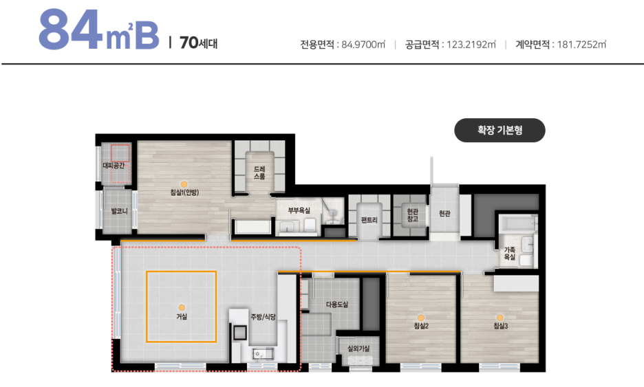 84B타입이 거실 양창이 있어서 뷰를 중요하게 생각하는분들에게 좀 더 인기가 있을것으로 생각해봅니다.