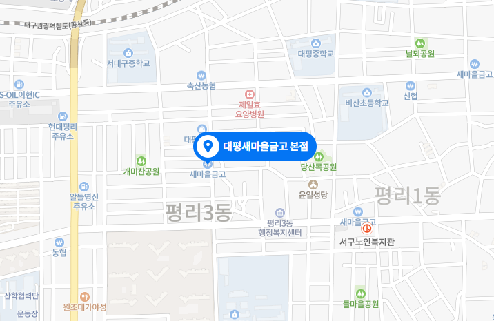 대평새마을금고는 본점 하나의 지점만 운영하고 있으니 방문하실분들은 대평새마을금고를 지도에서 위치를 잘 확인 후 방문하시기 바랍니다.